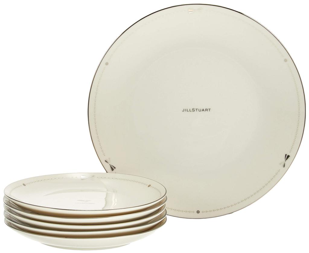 JILL STUART Plate Set, White, Ribbon Pattern, Cute and Stylish, Serves 5, 6-Piece Set, Made in Japan, Gift Boxed, 41635-33358