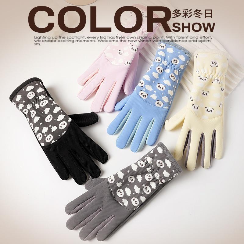 Children's velvet thermal gloves, panda cloud pattern, winter riding, windproof and cold-proof, children are cute, comfortable and warm