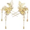 Hair Ornament Set with Flower and Butterfly Stylish Kanzashi Hairpin for Entrance Hanfu 2-Piece Design, U-Pin, Kimono, Yukata, Graduation, Ceremony,