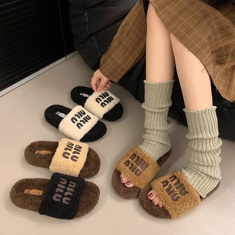 Lamb wool slippers women's outer wear thick bottom 2025 new popular autumn and winter non-slip advanced sense one-word cotton mop