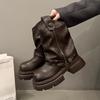 Thick-soled Martin boots women's 2025 autumn and winter new British style explosion small slim short boots Maillard V-mouth boots