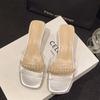 Papuci transparenți de damă cu strasuri și perle pentru exterior, cu bandă unică, noi de vară, versatili, cu toc gros de cristal, sandale cu toc înalt