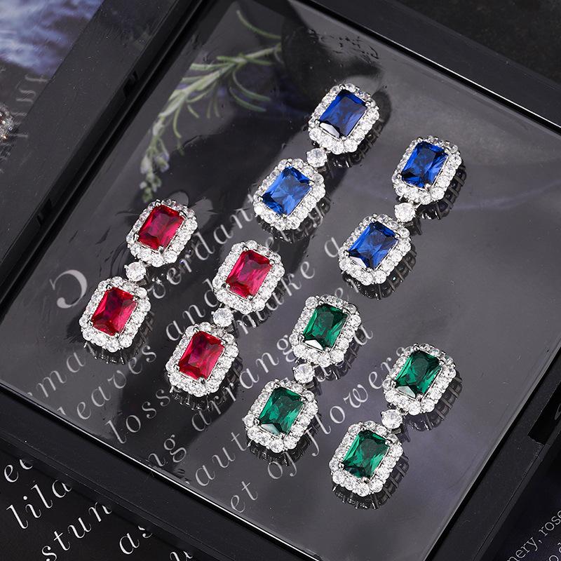 Jewelry Copper Bottom Gold-Plated Retro Simulation Red Corundum Blue Spinel Square Diamond Stud Earrings Pendant Main Stone 5 * 7