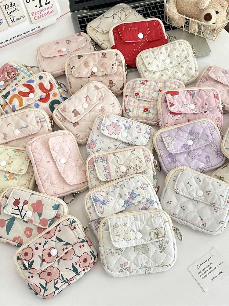 412221 Adorable Cartoon Floral Quilted Storage Bag, Document Holder, Coin Purse, & Card Organizer