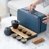 Simple high-end coarse pottery tea set, full set of home office teapots, portable high-end leather bags
