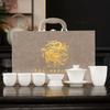 Premium beauty suet jade white porcelain kung fu tea set, household Xishi pot tea cup light luxury high-end gift box