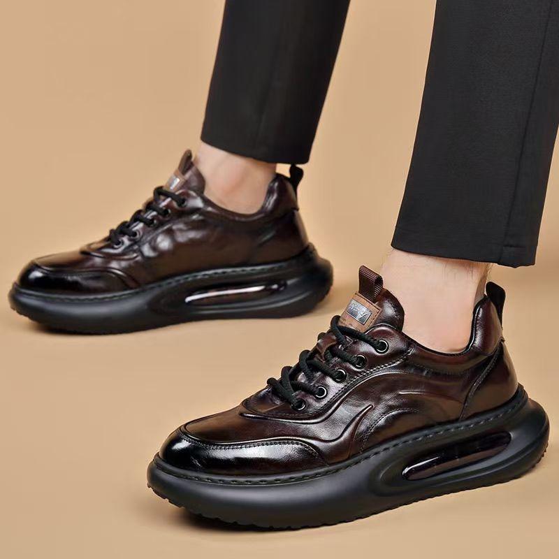 New platform leather dad shoes men's trendy shoes first layer cowhide sports and leisure shoes