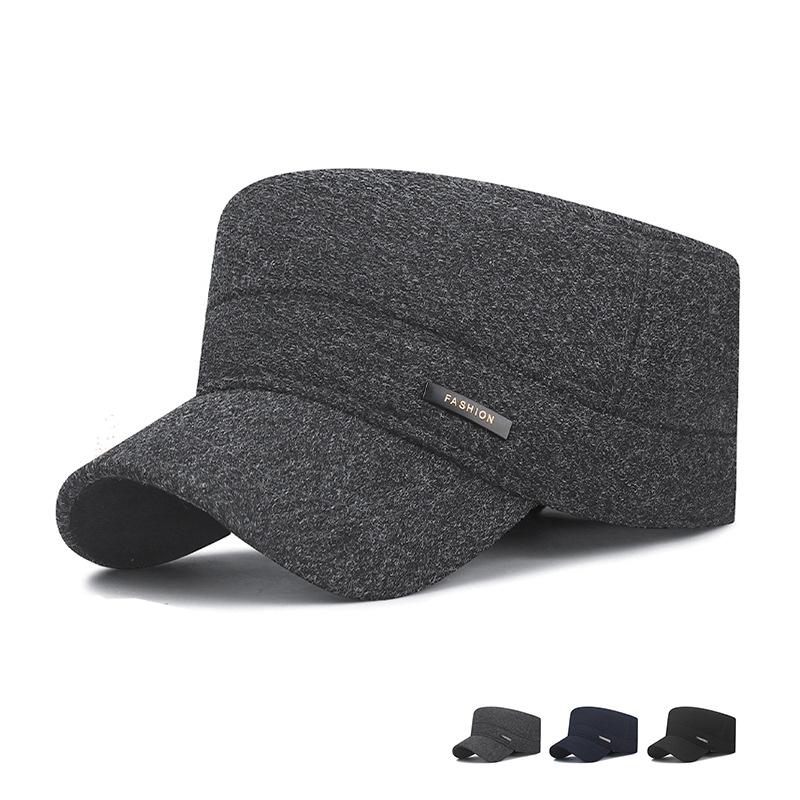 Winter Hat Men's Warm Windproof Cotton Hat for Middle-Aged and Elderly Thick Velvet and Cold-Proof Ear Protection Flat Top Hat