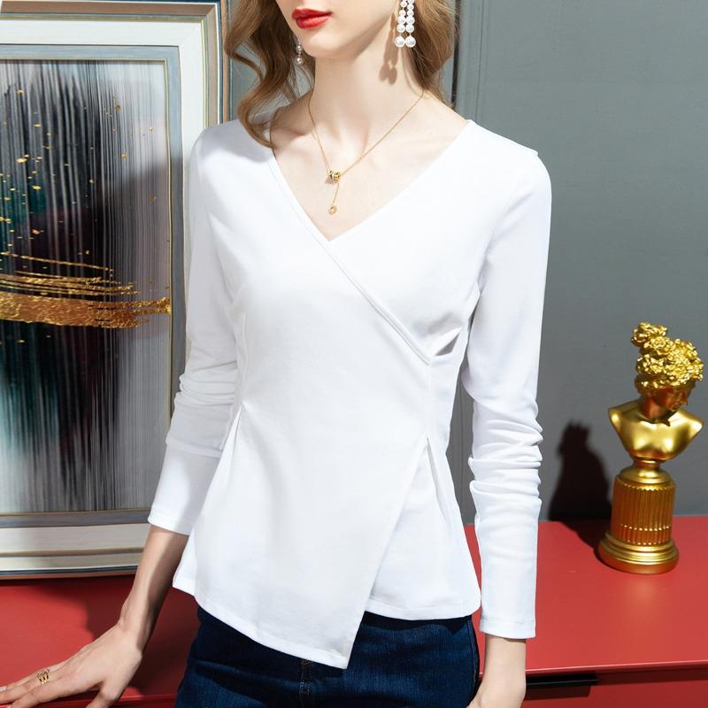 New women's clothing long-sleeved women's white split-ended summer models design irregular tops and shirts trendy