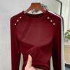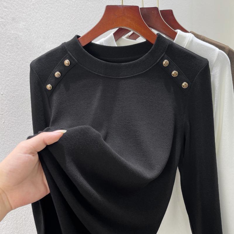 Button design imitation cashmere bottoming shirt women's round neck summer wear new women's clothing slim women's summer top