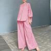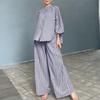 ZANZEA Bluză cu mânecă lungă și pantaloni Costum casual cu două piese cu dungi