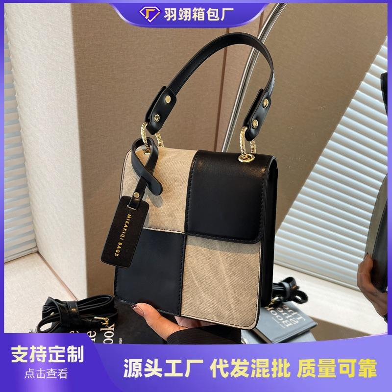 Popular niche design splicing portable small square bag new fashionable contrasting color shoulder messenger bag