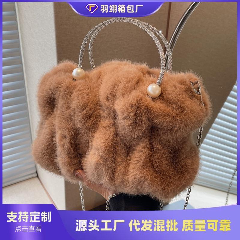Plush bag women's large-capacity new autumn and winter versatile chain messenger bag pleated plush bag