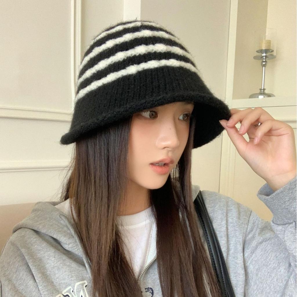 New Fisherman's Hat Hollow Contrast Color Stripe Knitted Sun Hat Spring and Summer Knitted Breathable Basin Hat Women's Korean Bucket Hat