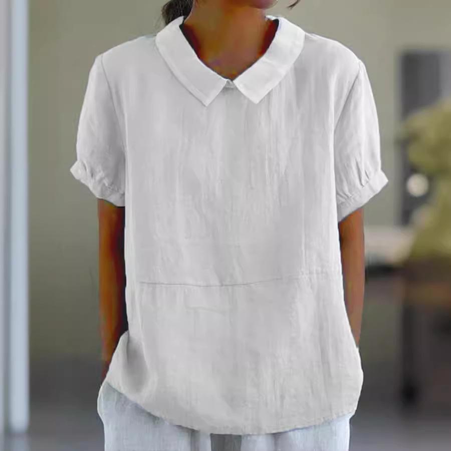 Women's Fashion Casual Summer Spring Solid Color Print Short Sleeve POLO Neck Blouses & Shirts