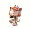 Acrylic With Pendant Cute Cat Listening To Music Design For Auto Interior Decor
