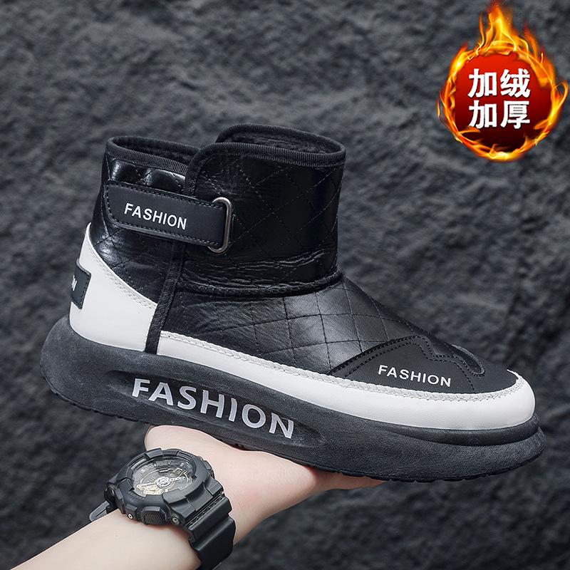 2025 winter new velvet thickened warm snow boots men's shoes leather surface platform Northeast fashion trendy cotton shoes