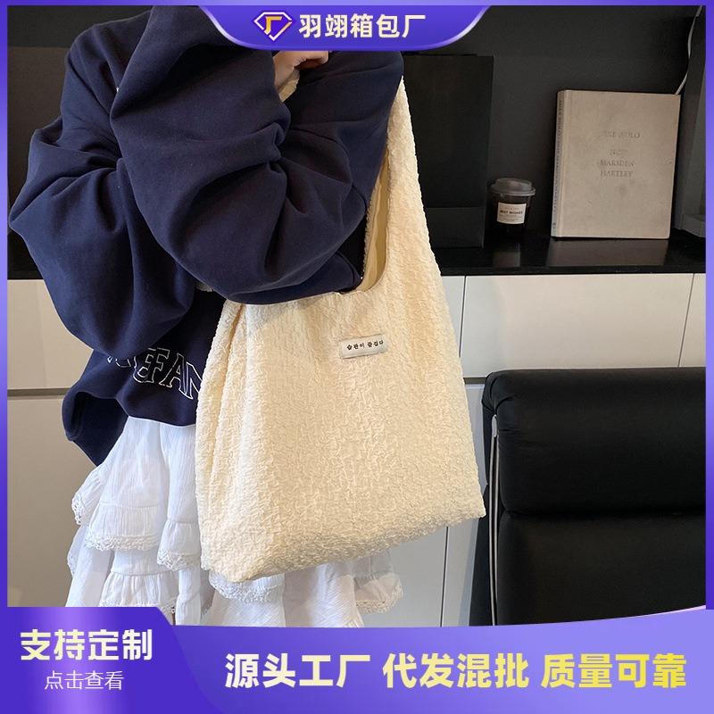 Tote bag women's large-capacity new versatile shoulder bag lazy wind bubble cloth college student class bag