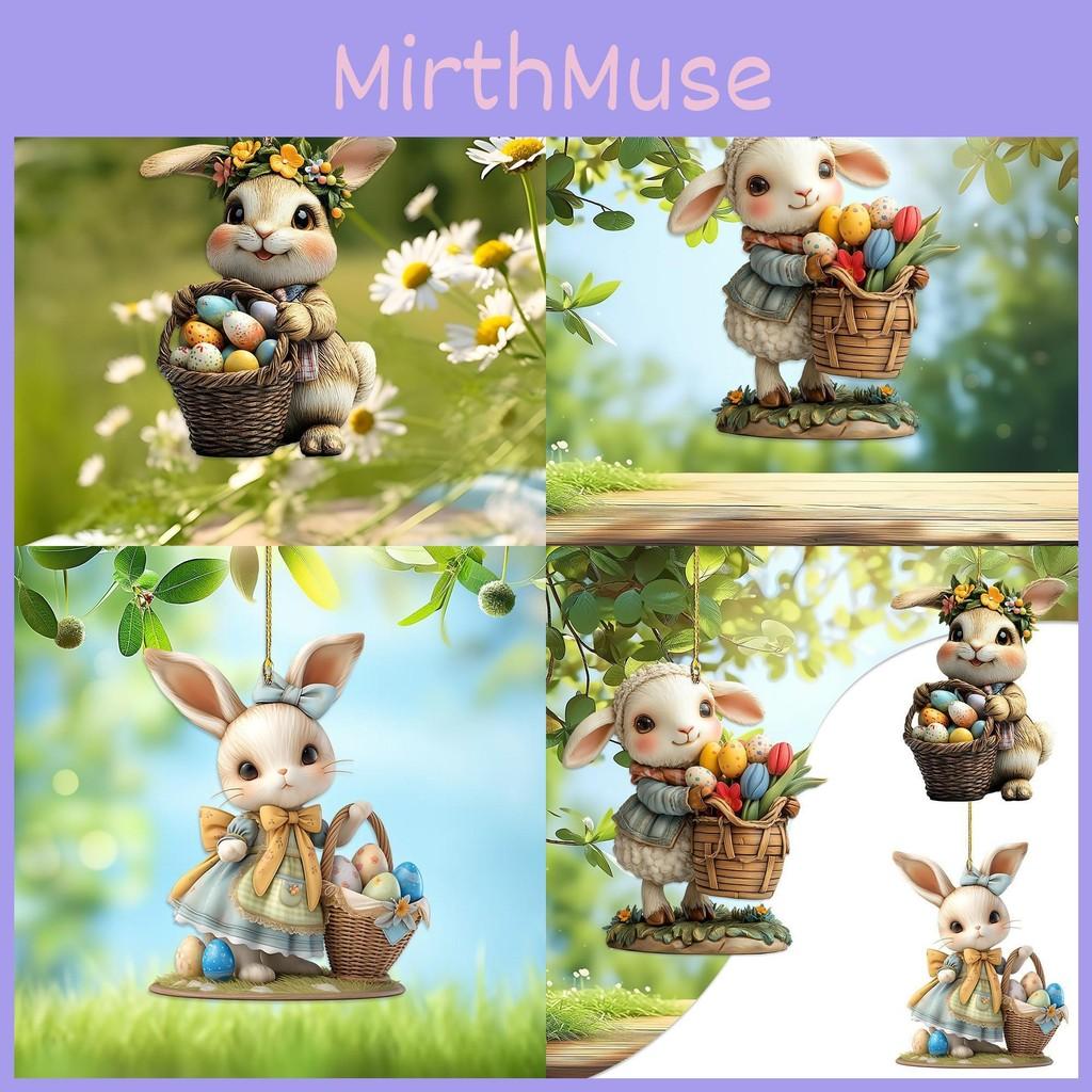 Rabbit Easter Little Holding Eggs Car Pendant With Acrylic Flat Surface Decor