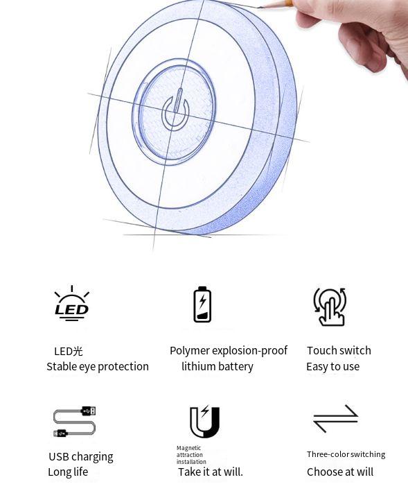 Rechargeable Car LED Interior Light Wireless Touch Control Reading Lamp Auto Ceiling Door Foot Trunk USB Bulb Auto Night Light