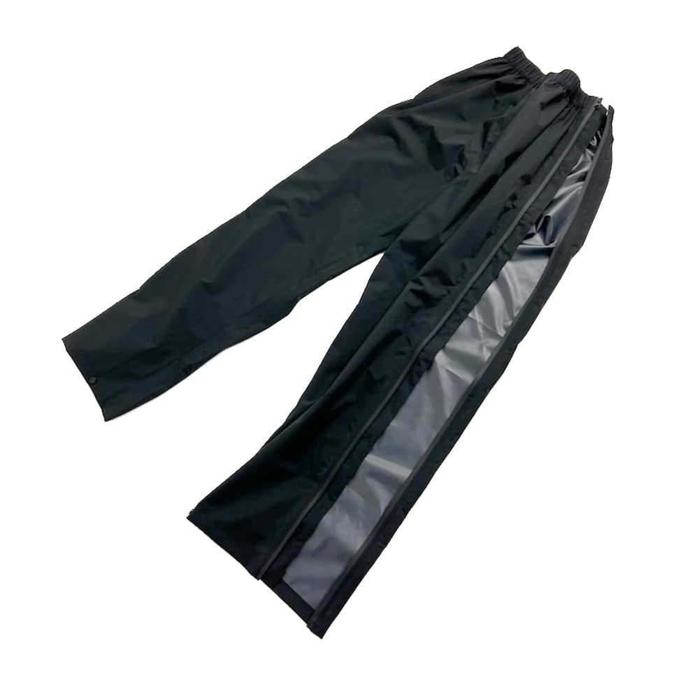 These pants effectively prevent rainwater from entering. Made with stretchy material, they offer excellent freedom of movement, and their simple black design complements any outdoor gear, allowing for stress-free movement in active activities like hiking, camping, and fishing. With a simple yet functional design, these rain pants are a must-have for any weather. Available in a variety of sizes and unisex, they're comfortable for everyone. Be sure to try these pants for more comfort and style during rainy days outdoors or in everyday life. *This product does not have a front zipper.