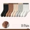 5/10 Perechi Șosete Simple cu Elasticitate Ridicată, Casual pentru Fete, Șosete Stil Coreean pentru Femei