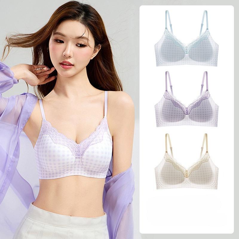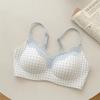 Check Lace Splicing No Steel Ring Push-up Girls Underwear Breathable Gathered U-shaped Beautiful Back Anti-sagging Comfortable Bra