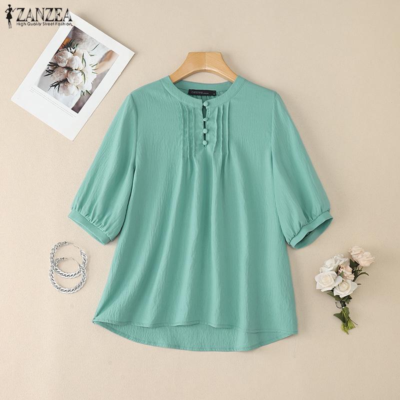 ZANZEA Bluză casual de vară pentru femei cu gât rotund și mâneci scurte