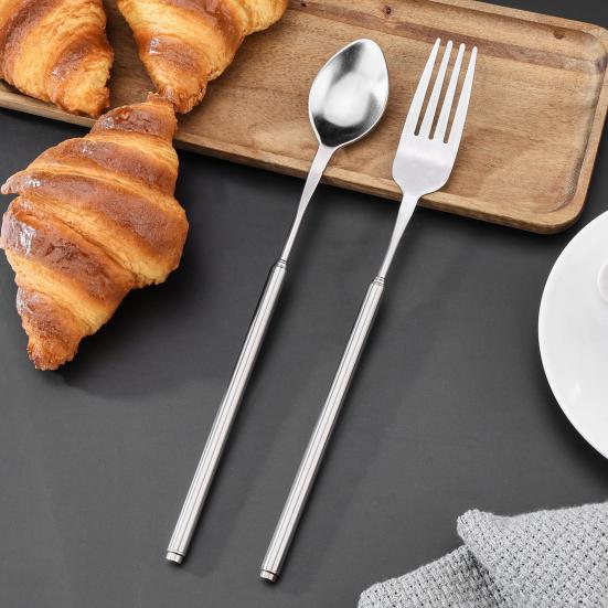 Lungime reglabilă: Cu o lungime a mânerului variind de la 21,5 cm la 64,5 cm, această furculiță lingură telescopică este perfectă pentru grătare, mese, deserturi, cârnați, hot dogi, legume și multe altele. Îmbrățișează adaptabilitatea în veselă, răspunzând diferitelor nevoi de servire cu un singur instrument versatil.