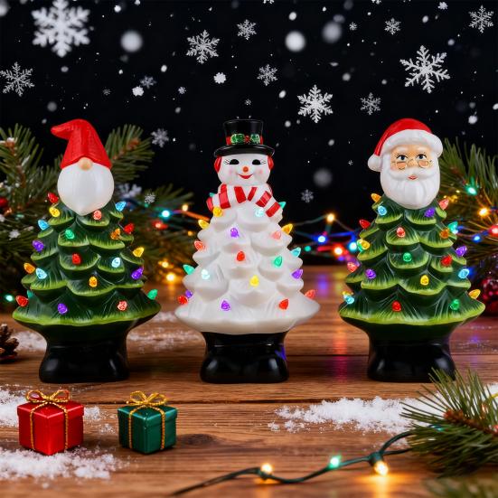 Lighted Christmas Gnome Tree Small Prelit Resin Christmas Tree with Multicolored Lights for Tabletop Home Room Fireplace Holiday Decor