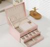 Cutie de bijuterii cu model diamant anti-oxidare cu trei straturi, cu capacitate mare pentru depozitarea colierelor și inelelor