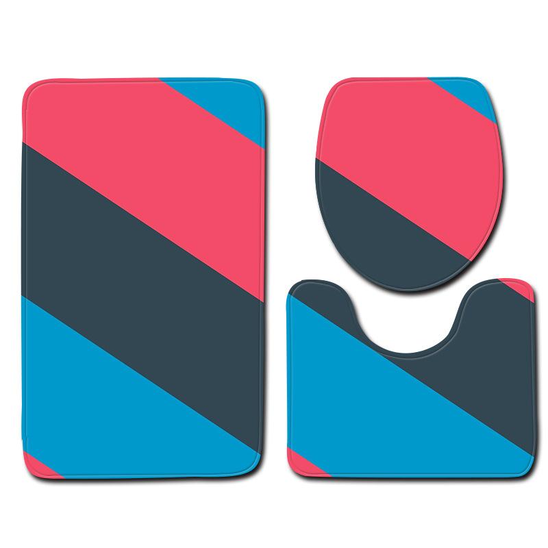 3D Color Block Bathroom Toilet Three-Piece Floor Mat Doormat Bathroom Carpet