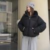 Short Cotton-padded Jacket With Imitation Mink Fur Hood