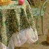 Tablecloth Jacquard Green Rose Oil Painting Plant Outdoor Tablecloth Lace Ruffle Coffee Machine Cover