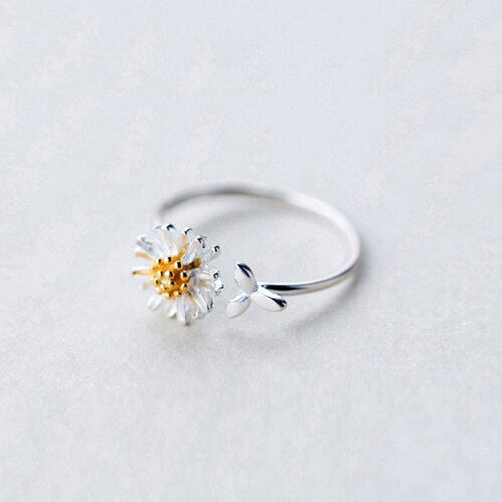 Silver 925 Daily Open Layered Ring Daisy Flower Ring R008