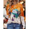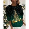 Top cu gât rotund de primăvară și toamnă, cu temă de Crăciun, imprimat 3D, tricouri de damă la modă și casual cu mâneci lungi