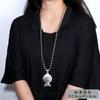 Colier cu pandantiv Lacătul Păcii Argintiu Retro - Lanț Lung pentru Pulover pentru Femei, cu Patru Laturi pentru Avere, în Stil Național