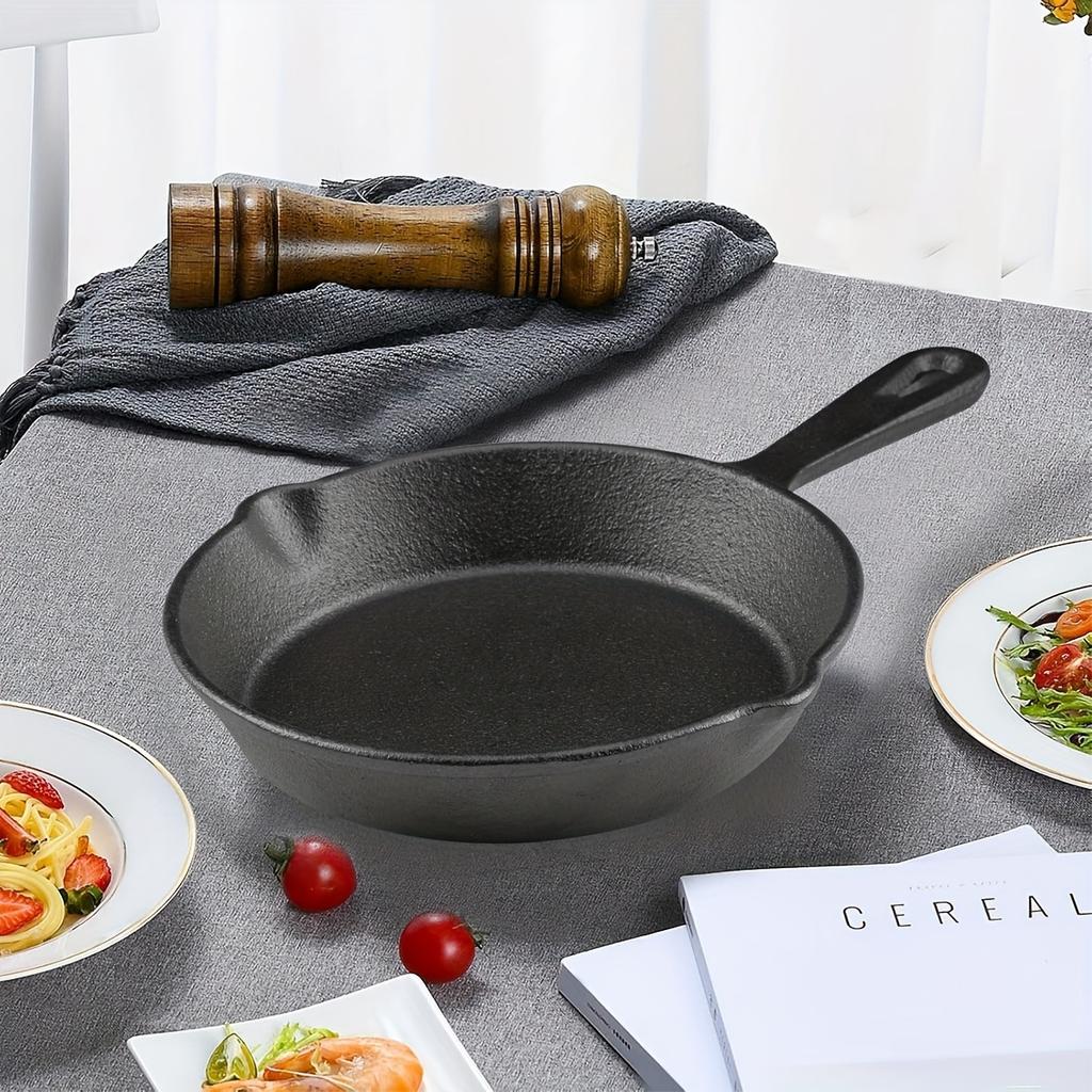 D5 Kitchen Saute Fry Pan, Cast Iron Frying Pan with Heat-Resistant Handle, Pre-Seasoned Pan Cookware for Frying, Saute, Cooking