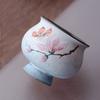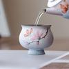 Hand Painted Ceramic Flower Tea Cup with 3D Butterfly High Foot Blue Porcelain Tea Set for Personal Use
