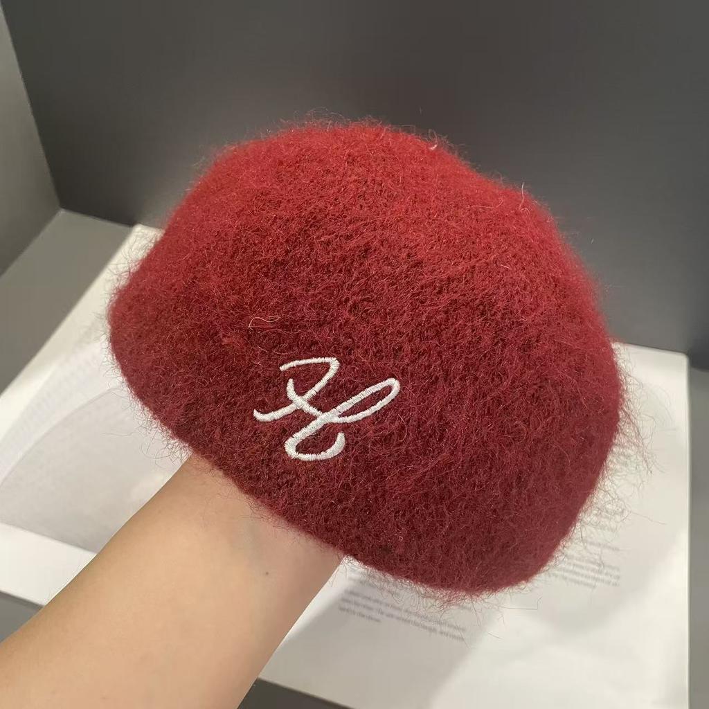 Autumn and Winter New English Letter Beret Hat for Women Casual Warm Woolen Hat with Temperament and Face Little Painter Hat