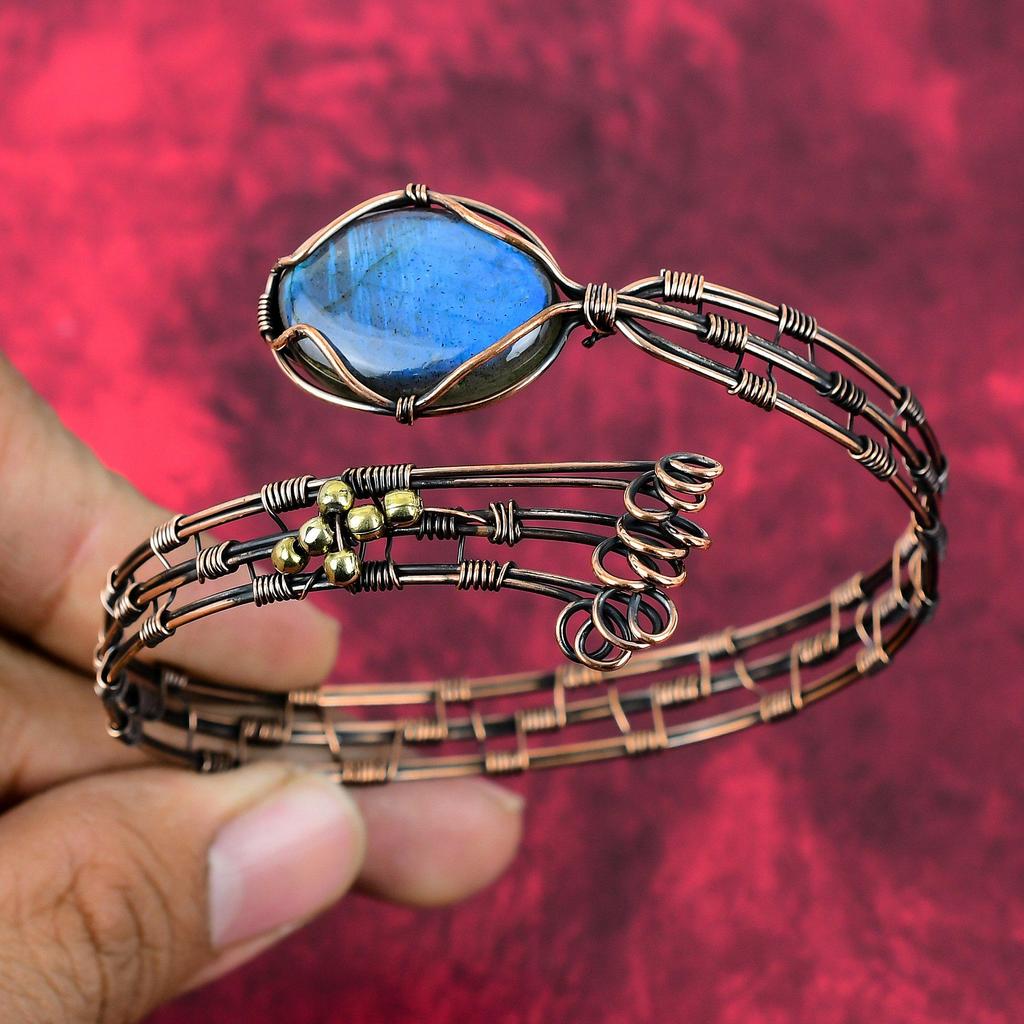 Labradorite Bangle Copper Wire Wrapped Cuff Bracelet Adjustable Cuff Copper Jewelry Handmade Bangle Original Gemstone Jewelry Gifts For Him
