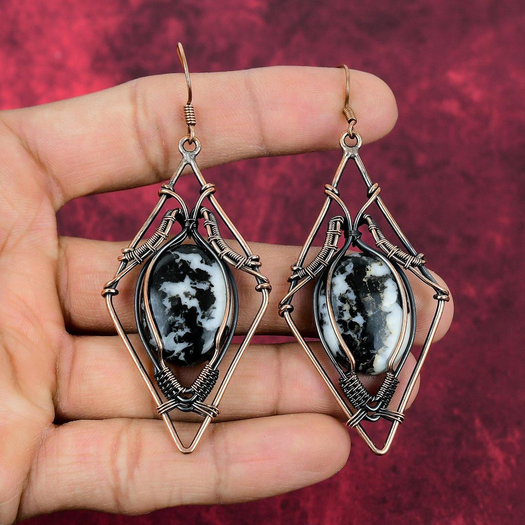 White Buffalo Turquoise Earring Copper Wire Wrapped Earrings Handmade Earrings Copper Wire Jewelry Original Gemstone Earring Gifts For Wife