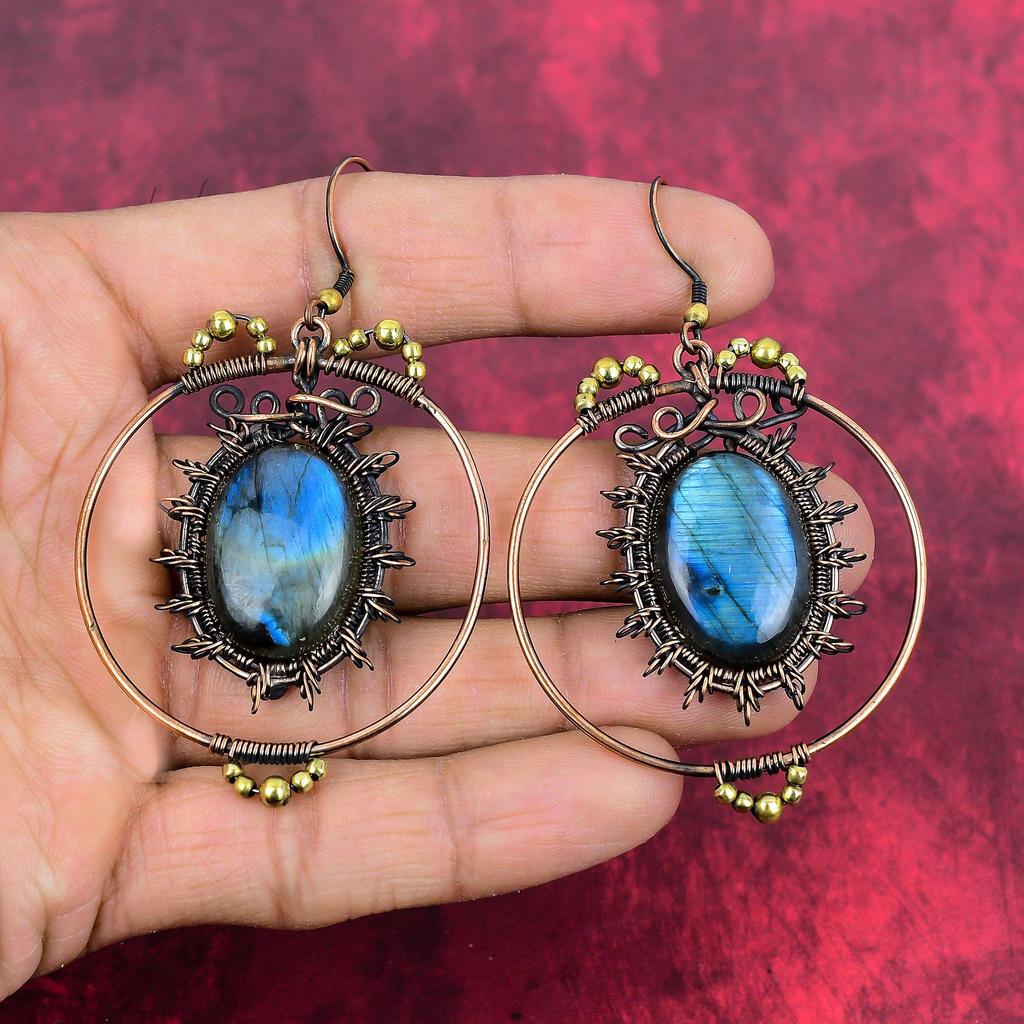 Labradorite earring copper wire wrapped earring top quality gemstone earrings Labradorite copper jewelry handmade drop earring gifts for her