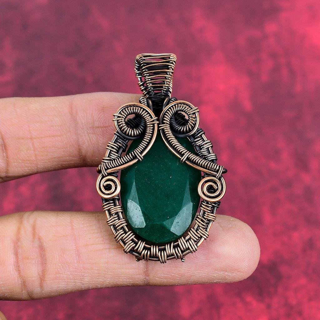 Faceted zambian emerald pendant copper wire wrapped pendant gemstone handmade jewelry designer pendant gifts for friend wire weaving jewelry