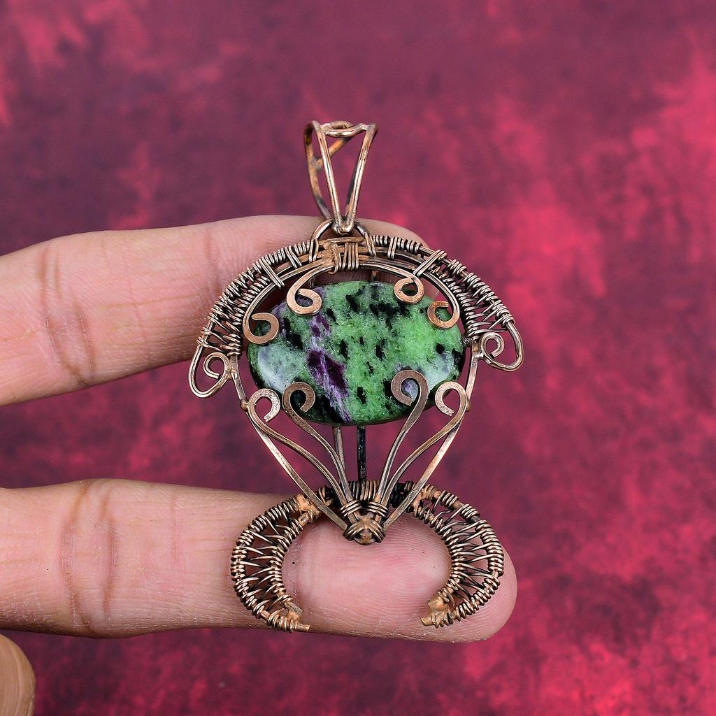 Ruby zoisite pendant copper wire wrapped gemstone pendant handmade jewelry tortoise pendant copper jewelry gifts for him wire wrap jewelry