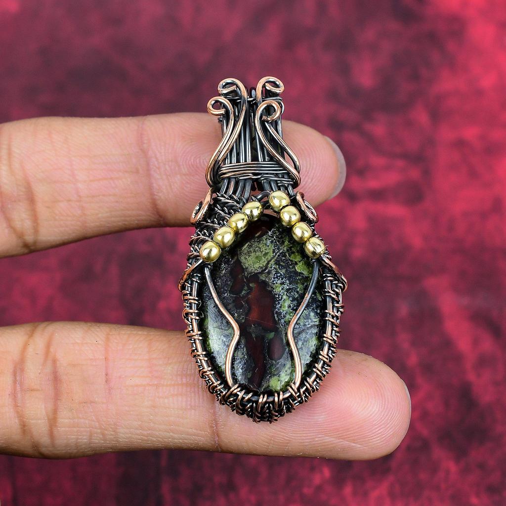 Dragon bloodstone pendant copper wire wrapped pendant handmade copper jewelry genuine gemstone pendant wire weaving jewelry engagement gifts