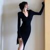 New autumn temperament Muse Fan slim-fitting polo long-sleeved knitted dress women's autumn and winter