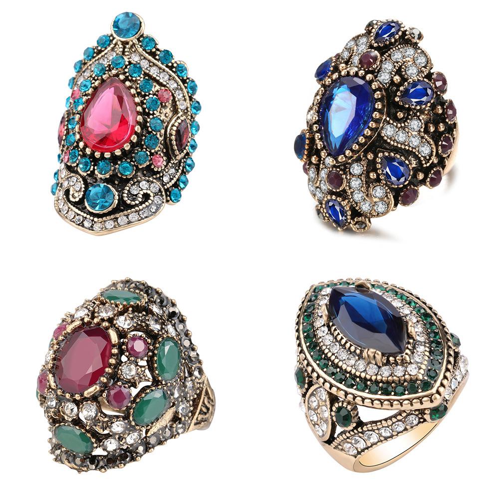 Inel Boem European și American Placat cu Aur Retro Nișă pentru Femei Lux Ușor High-end Exagerat cu Piatră Prețioasă Decor