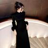 The daughter of the Republic of China improved cheongsam women's new long black sweater knitted dress women's autumn and winter