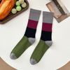 Autumn and Winter Color-blocked Striped Socks, Dopamine Retro Mid-calf Double-needle Socks, Stylish and Slimming Long Socks